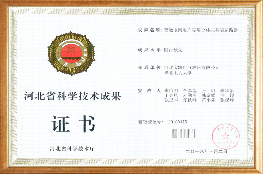 保定市智能电网用户端低压电器元件及成套设备技术创新中心