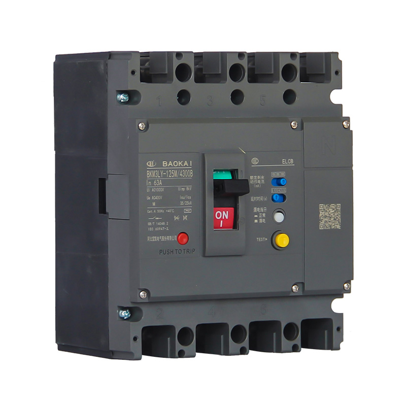 BKM3L系列带剩余电流保护塑料外壳式断路器适用于交流50Hz,额定绝缘电压1000V,额定工作电压至400V,额定电流至800A的配电网络中,用来分配电能和保护线路免受过载、短路、欠电压等故障的损坏。额定电流630A及以下的断路器亦可作为电动机不频繁起动用。同时还可以用来防止因设备绝缘损坏产生接地故障电流而引起的火灾风险。本断路器可垂直安装(即竖装),亦可水平安装(即横装)。本系列断路器具有隔离功能。本系列断路器执行标准:IEC 60947-1及GB/T 14048.1 《低压开关设备和控制设备 第1部分:总则》IEC 60947-2及GB/T 14048.2 《低压开关设备和控制设备 第2部分:断路器》IEC 60947-4及GB/T 14048.4 《低压开关设备和控制设备 第4-1部分:接触器和电动机起动器 机电式接触器和电动机起动器(含电动机保护器)》