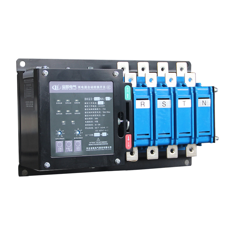 BKQ3-NA/N系列PC级双电源自动转换开关电器适用于交流额定工作电压400V及以下,额定频率50/60Hz,额定电流16A至400A的应急供电系统中两路电源间的自动转换,以确保重要负荷连续、安全、可靠的运行。BKQ3-NA/N两段位自动转换开关电器特别适用于金融建筑、电信和轨道交通等行业要求自动转换常用电源和备用电源的场所,具有电网-电网、电网-发电机的供电模式。产品符合GB/T 14048.11《低压开关设备和控制设备 第 6-1 部分:多功能电器 转换开关电器》。